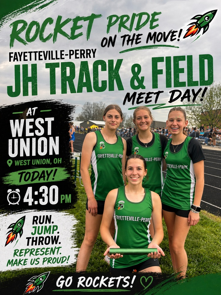 Our Fayetteville-Perry JH Track & Field team is headed to West Union, Ohio today for a meet starting at 4:30 PM